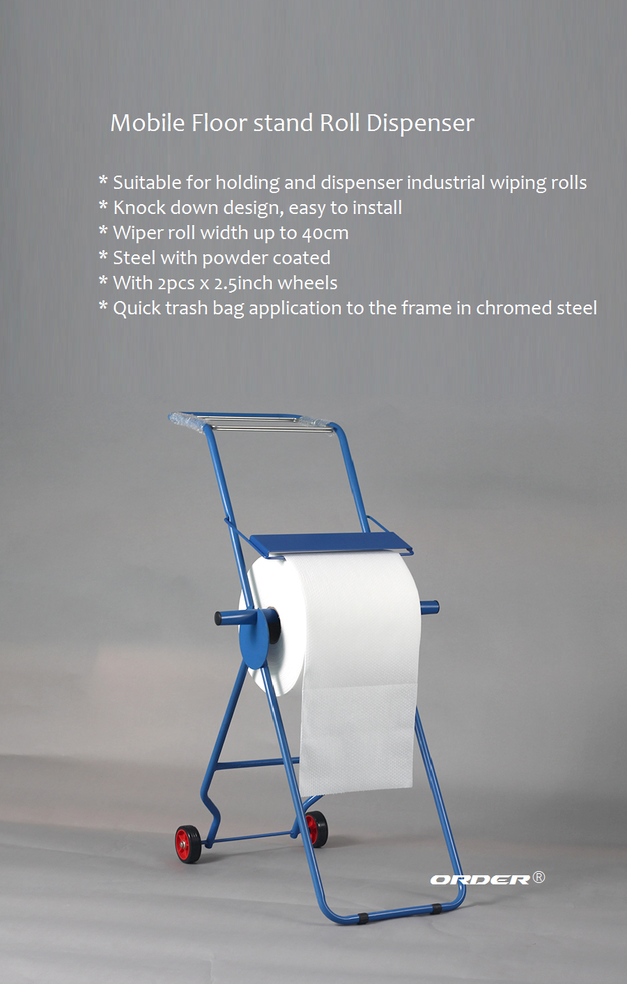 Mobile Floor Stand Large Jumbo Roll Wiper Dispenser