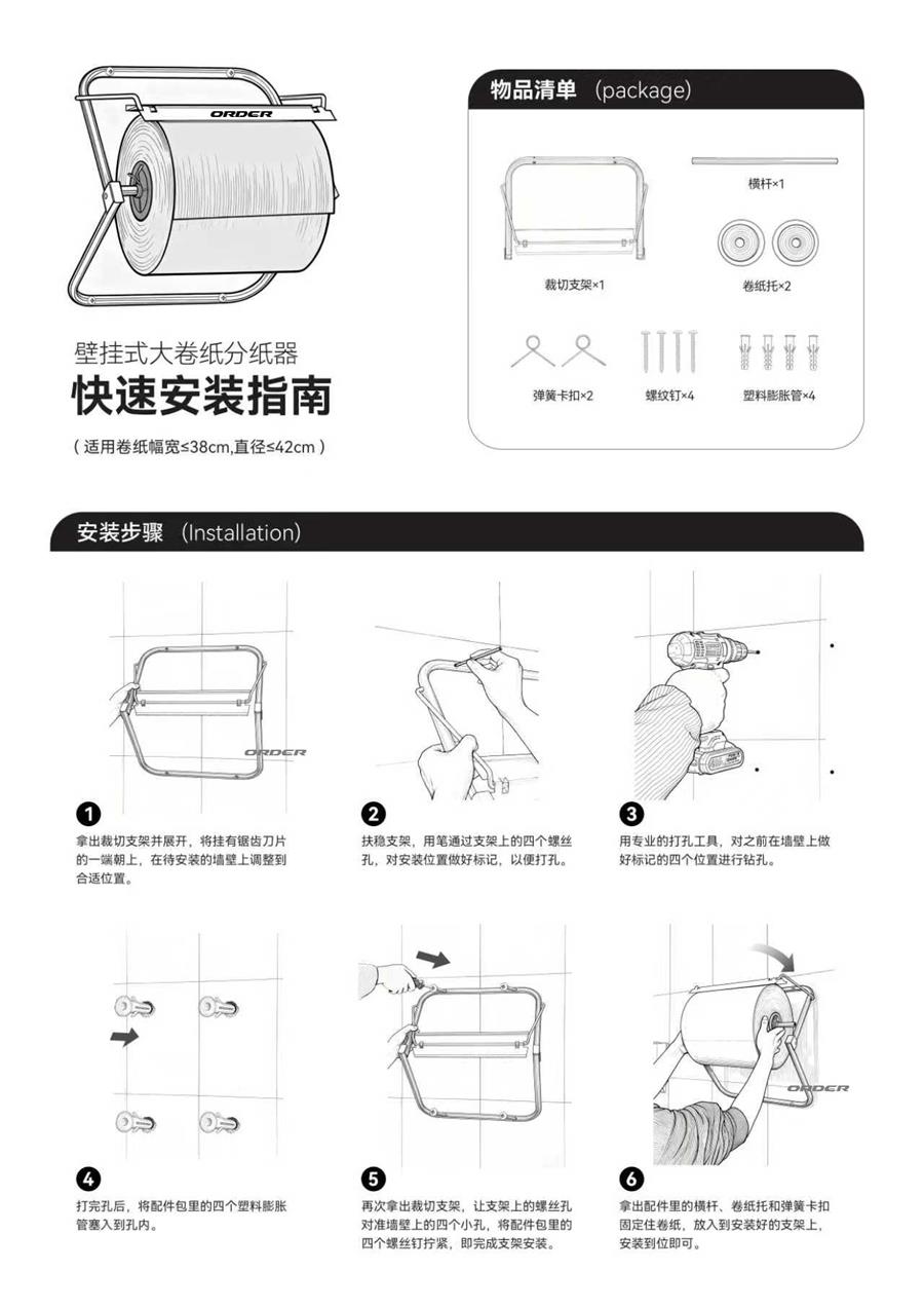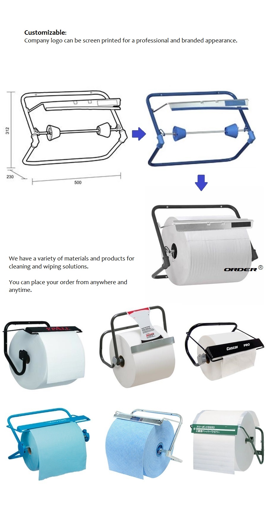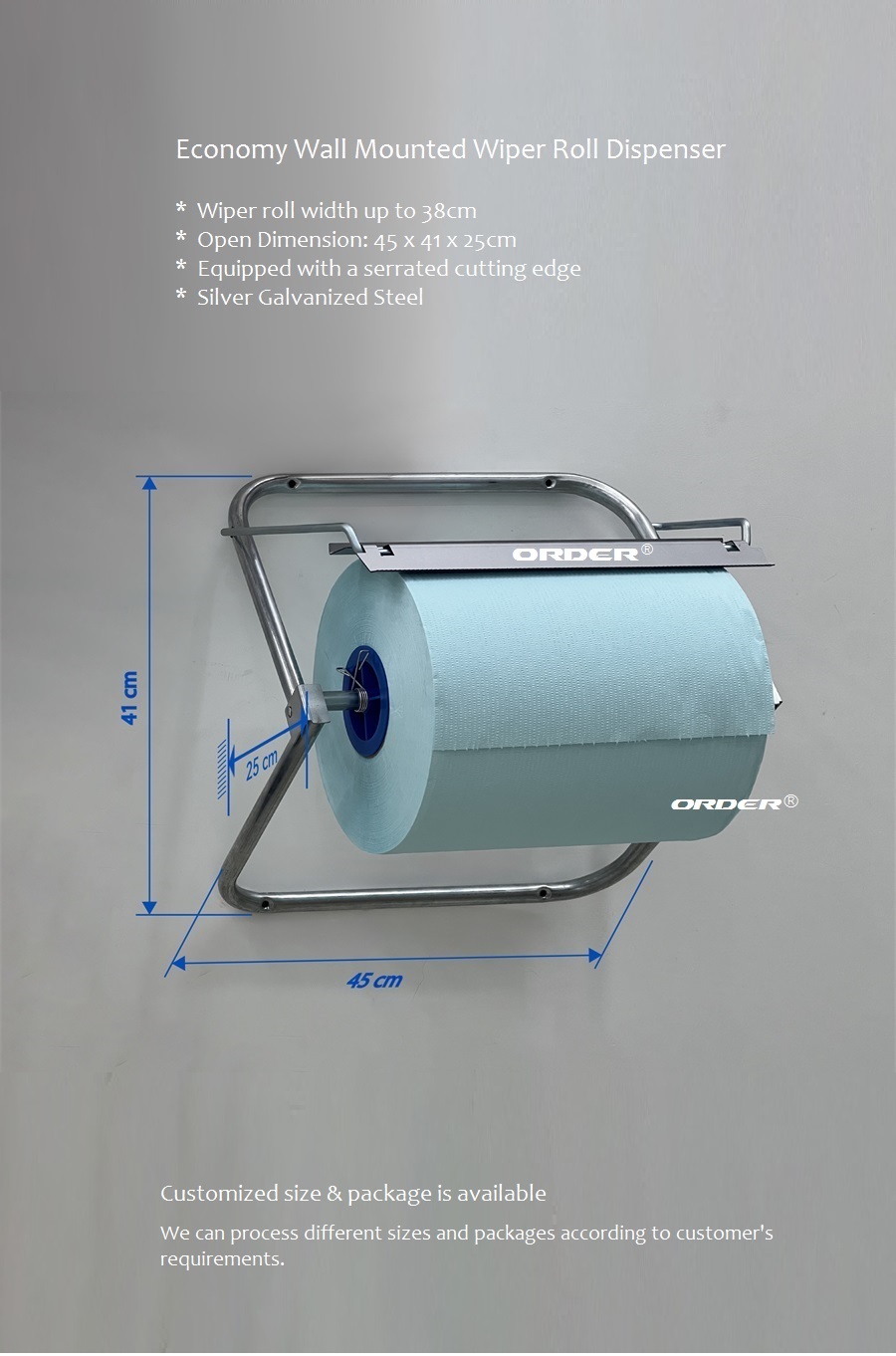 - Wall Mounted use for quickly and easily dispensing non-wovenwipers from large ORDER*rolls