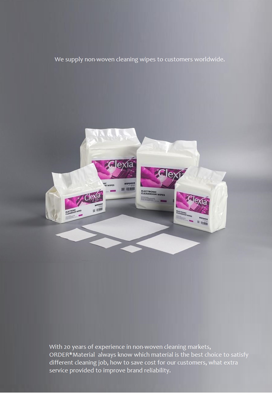 ORDER ® WIP-0609-T nonwoven styles (Cellulose/polyester) are engineered for cleanroom use and combine absorbency of a natural fibre with the cleanliness and strength of a synthetic