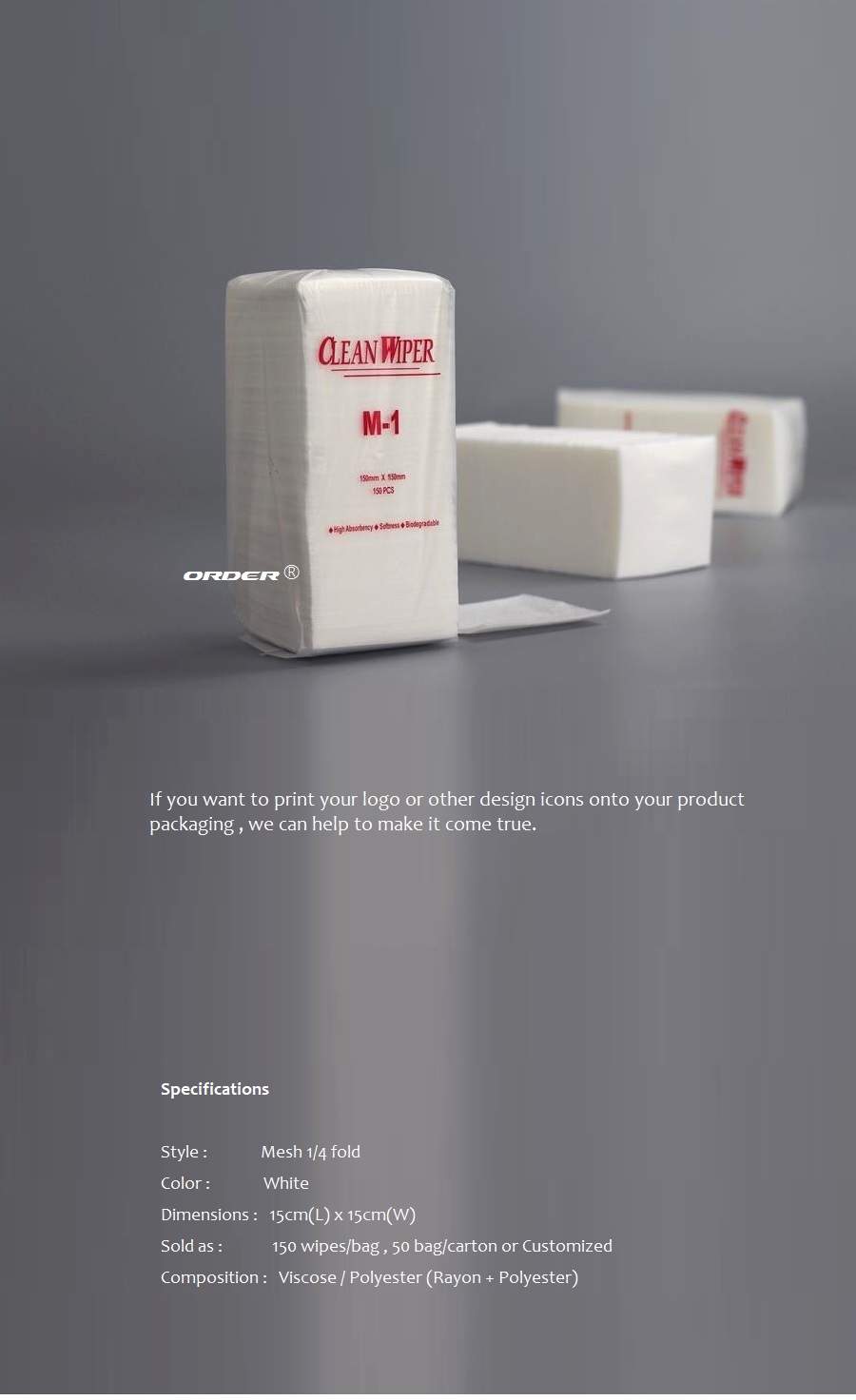 ORDER M-1 Mesh Rayon Non-woven Wipes are made from viscose(rayon)/ polyester material fabric.