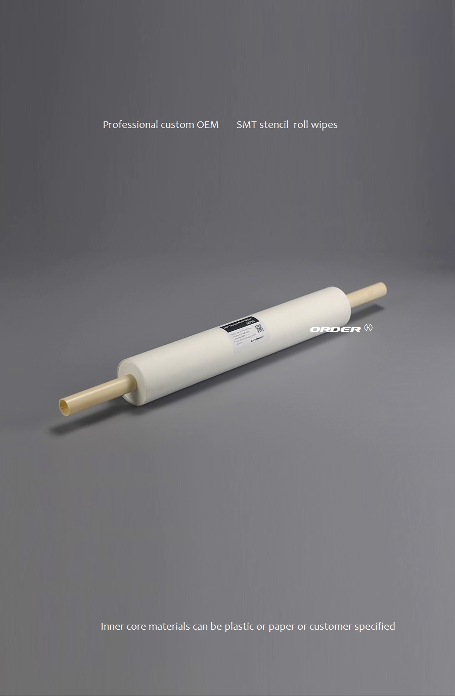 SMT wiping paper consists of clean paper and liner material (paper tube, hose), liner length, diameter, outside Diameter, dust-free paper material width, length can be customized according to customer requirements.