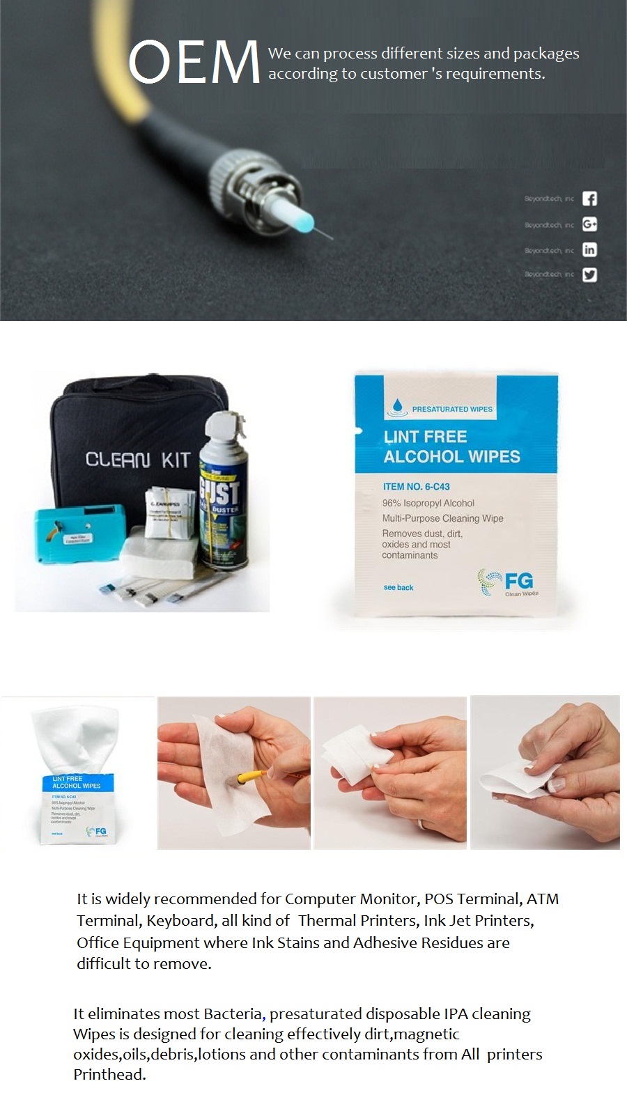 Spunlace Wipes are Presaturated with 99.9% Electronic Grade IPA Solution used in the Preventive