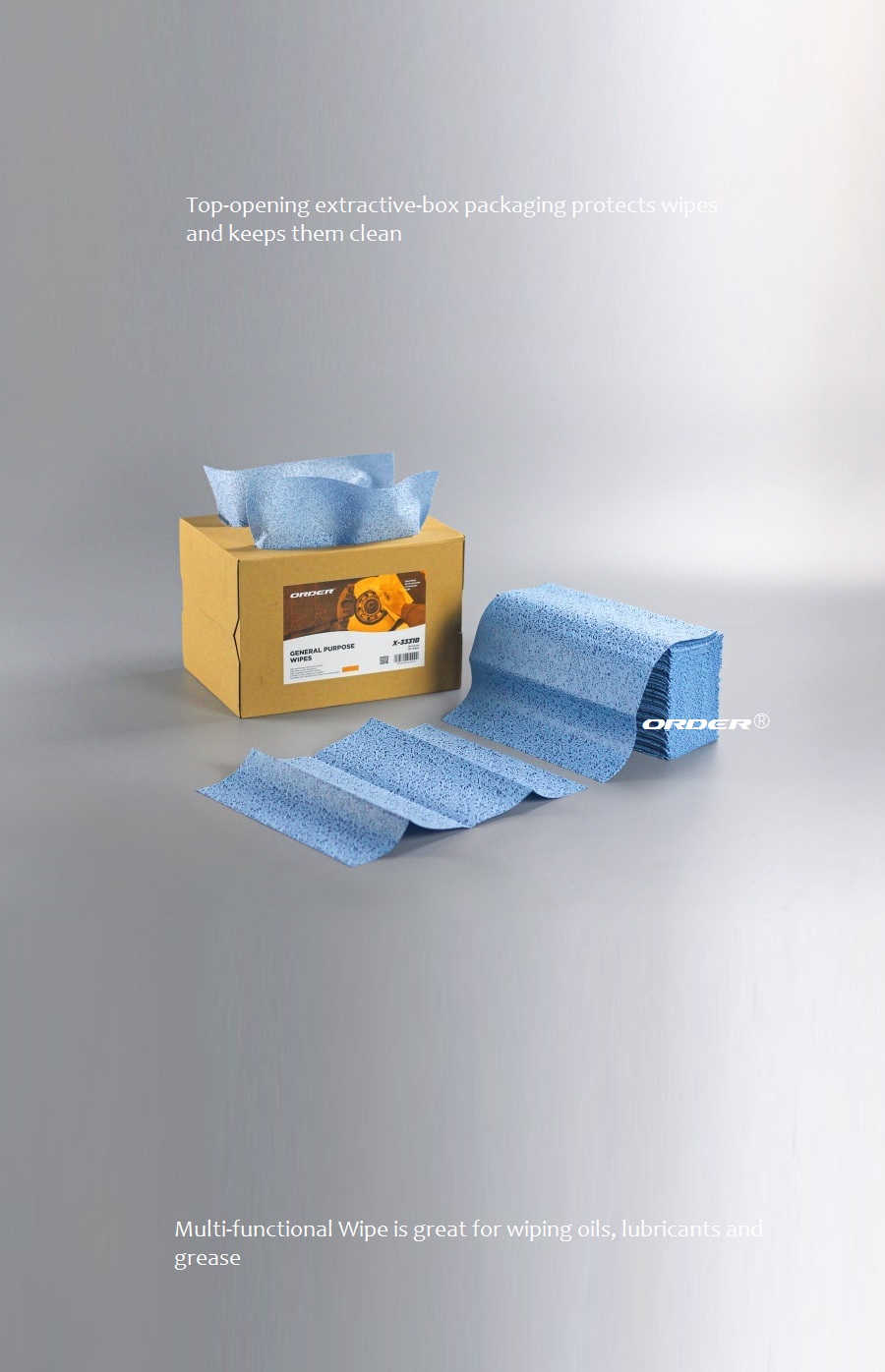 ORDER® Melt-blown Heavy Duty wipes All Purpose easily cleans tools, equipment, machinery and surfaces.
