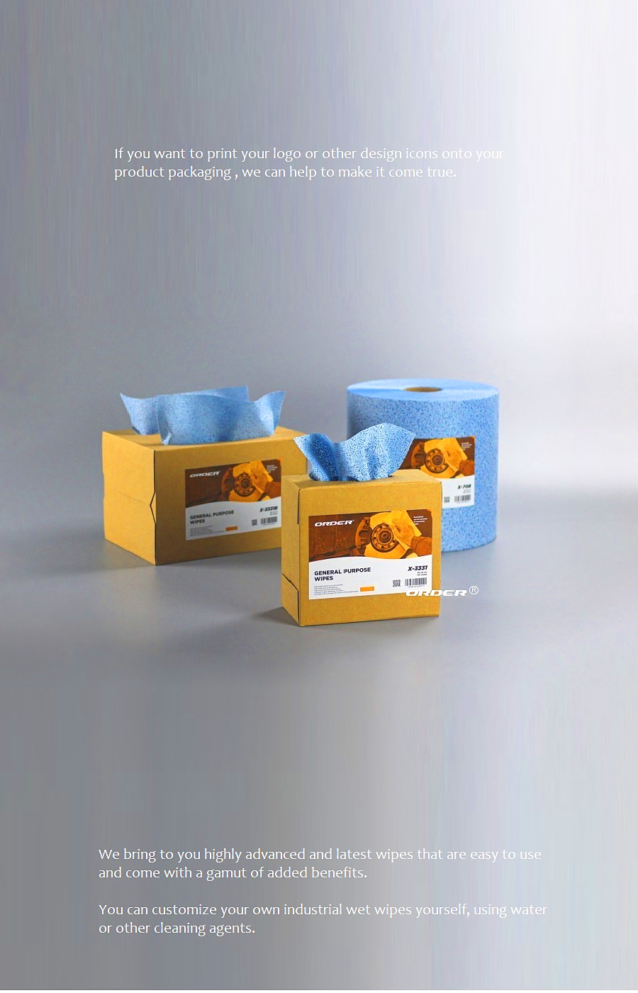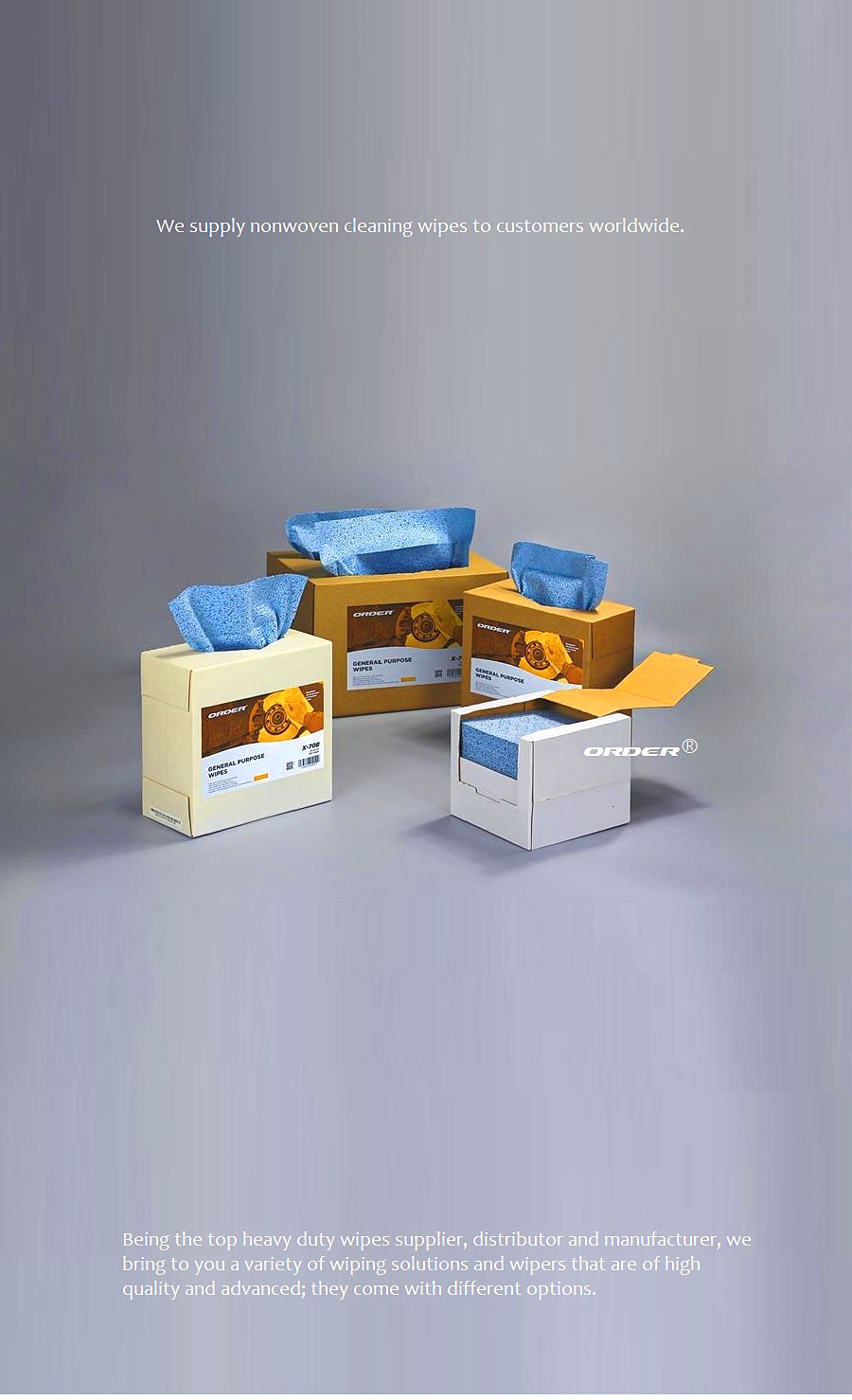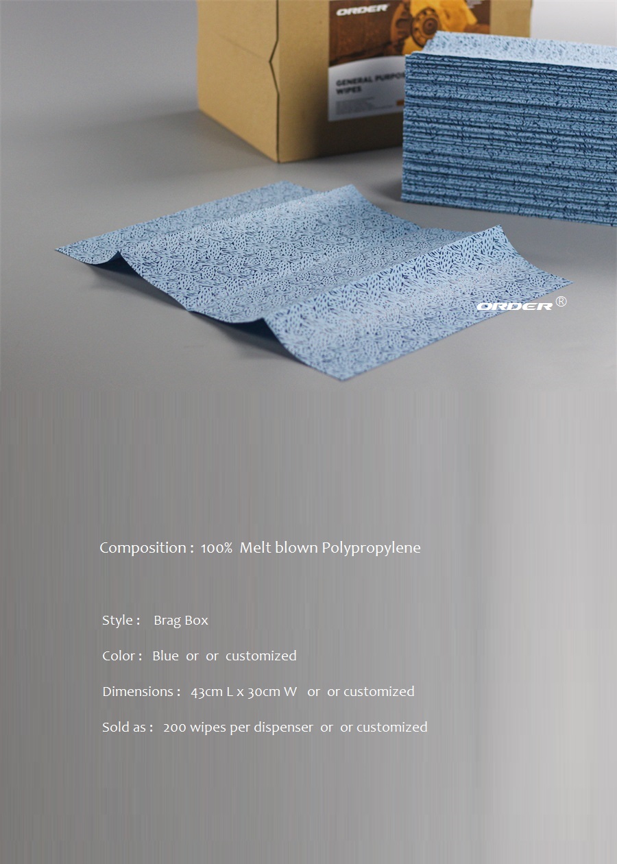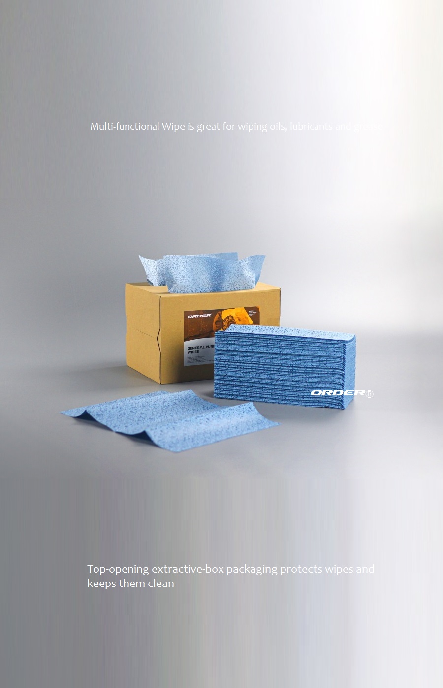 ORDER® Melt-blown Heavy Duty wipes All Purpose easily cleans tools, equipment, machinery and surfaces.